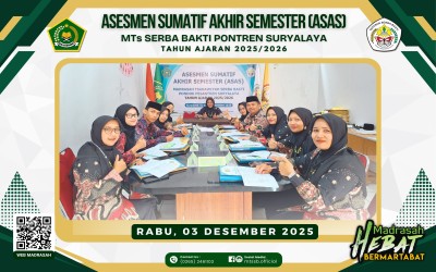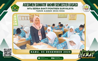 SURYALAYA - Sabtu, 07 Desember 2025. Pelaksanaan Asesmen Sumatif Akhir Semester (ASAS) hari keenam di MTs Serba Bakti Pontren Suryalaya menjadi penutup rangkaian uji