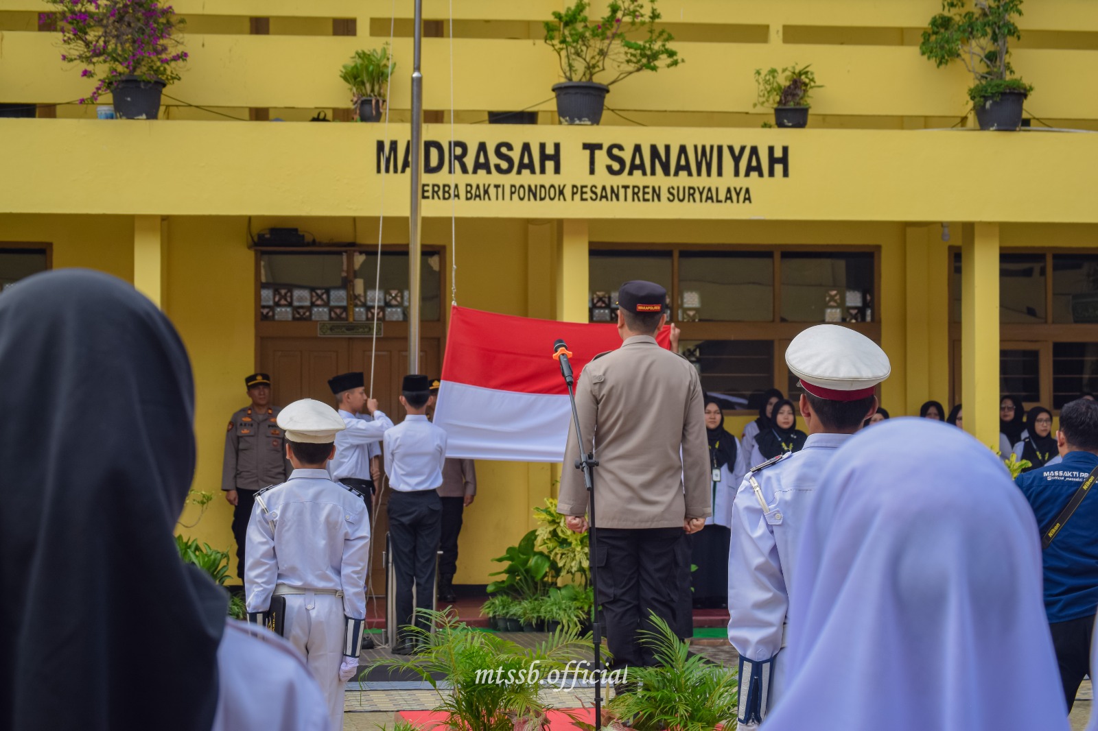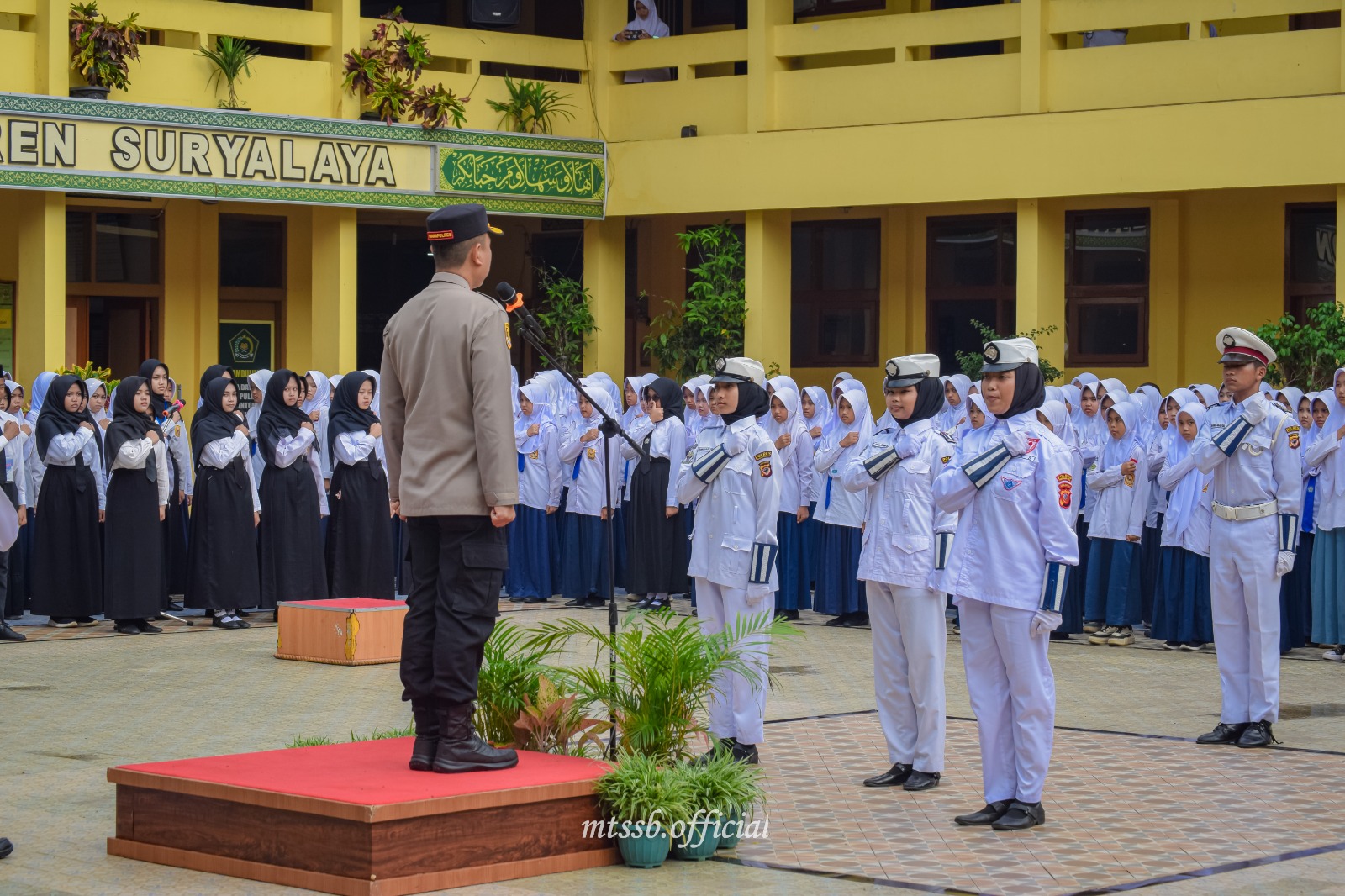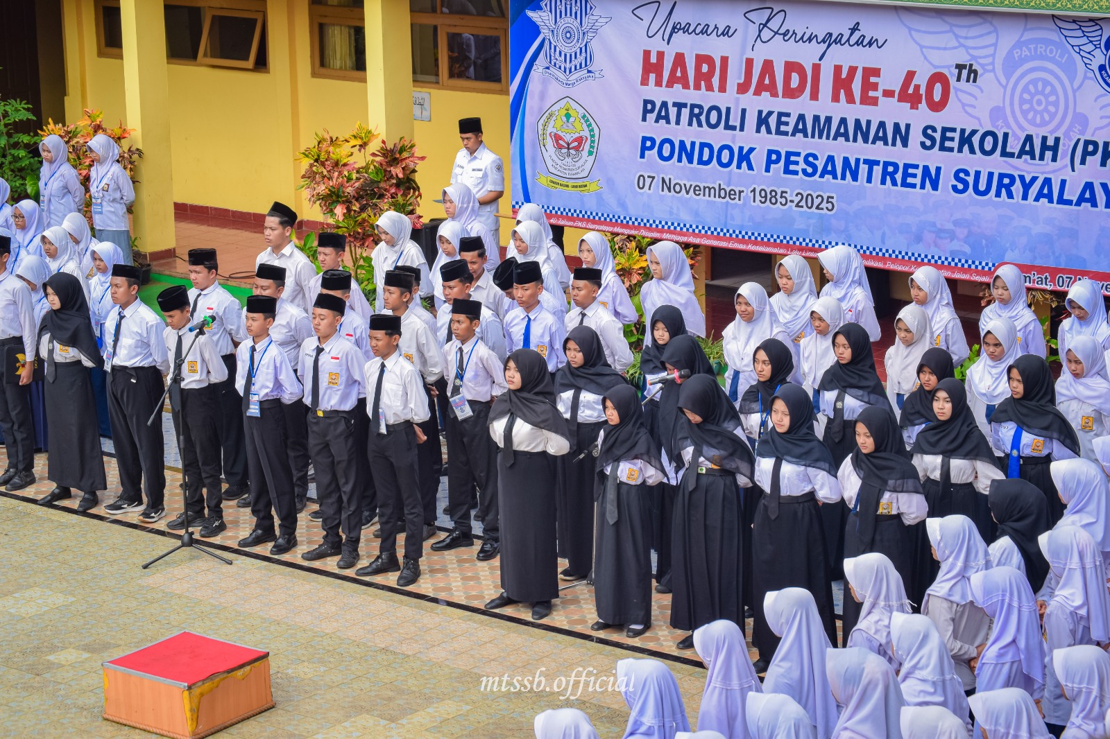 SURYALAYA - Madrasah Tsanawiyah Serba Bakti Pontren Suryalaya menggelar Upacara Peringatan Hari Ulang Tahun ke-40 Patroli Keamanan Sekolah (PKS) Pontren Suryalaya pada Jumat, 7 November 2025, bertempat di lapangan madrasah. Kegiatan berlangsung dengan khidmat dan penuh semangat kebangsaan, diikuti oleh seluruh guru, tenaga kependidikan, dan peserta didik MTs Serba Bakti.