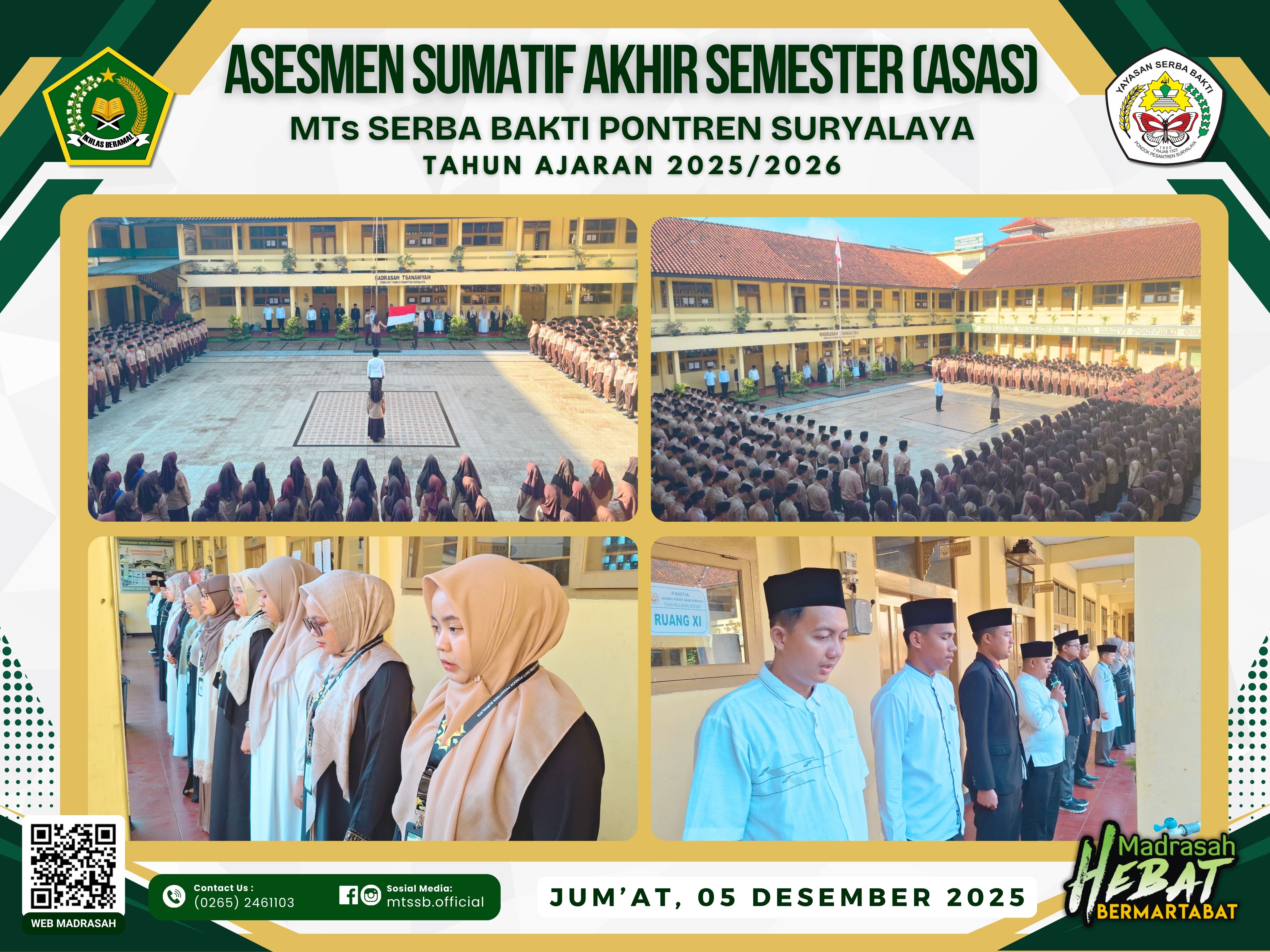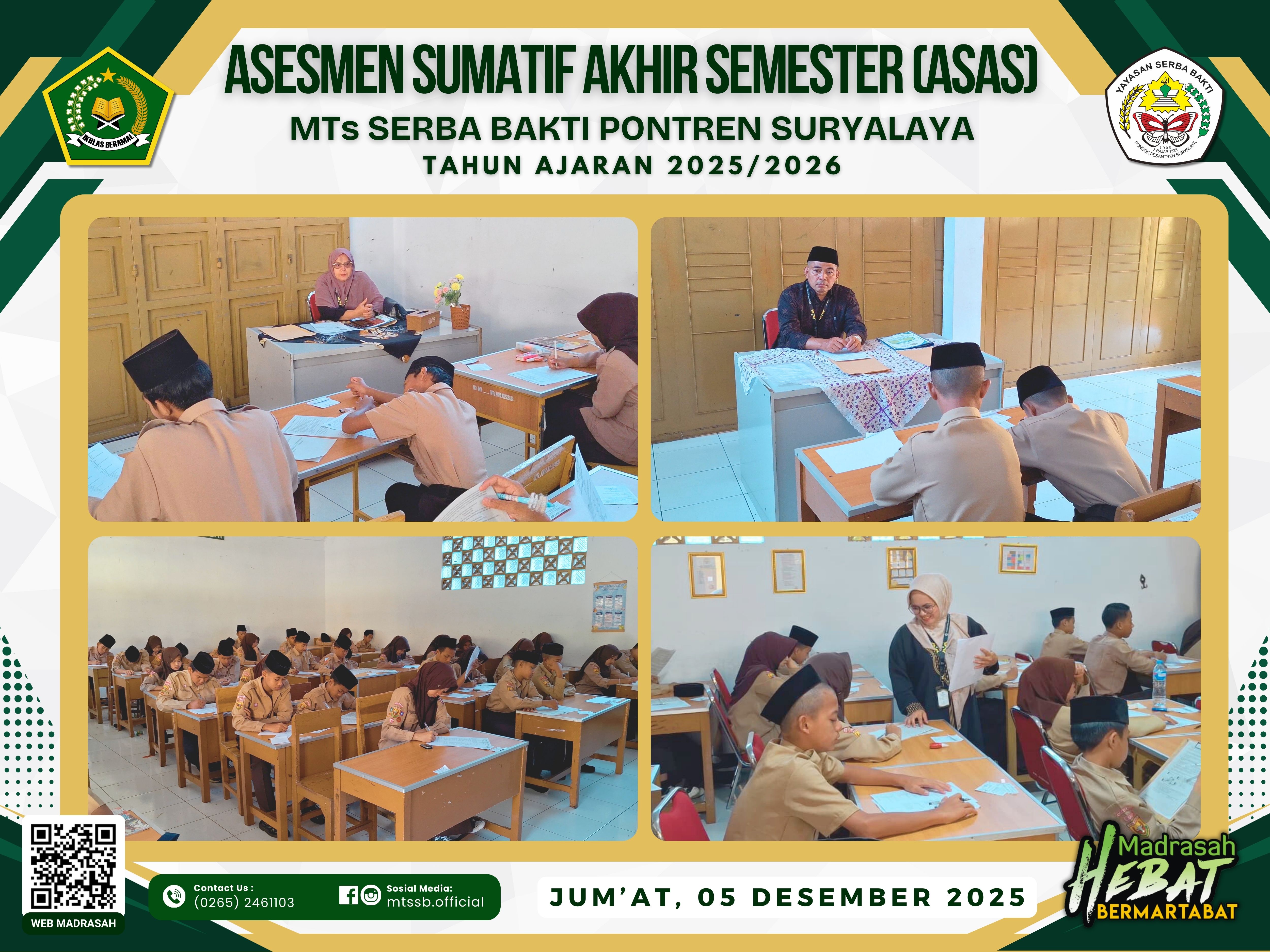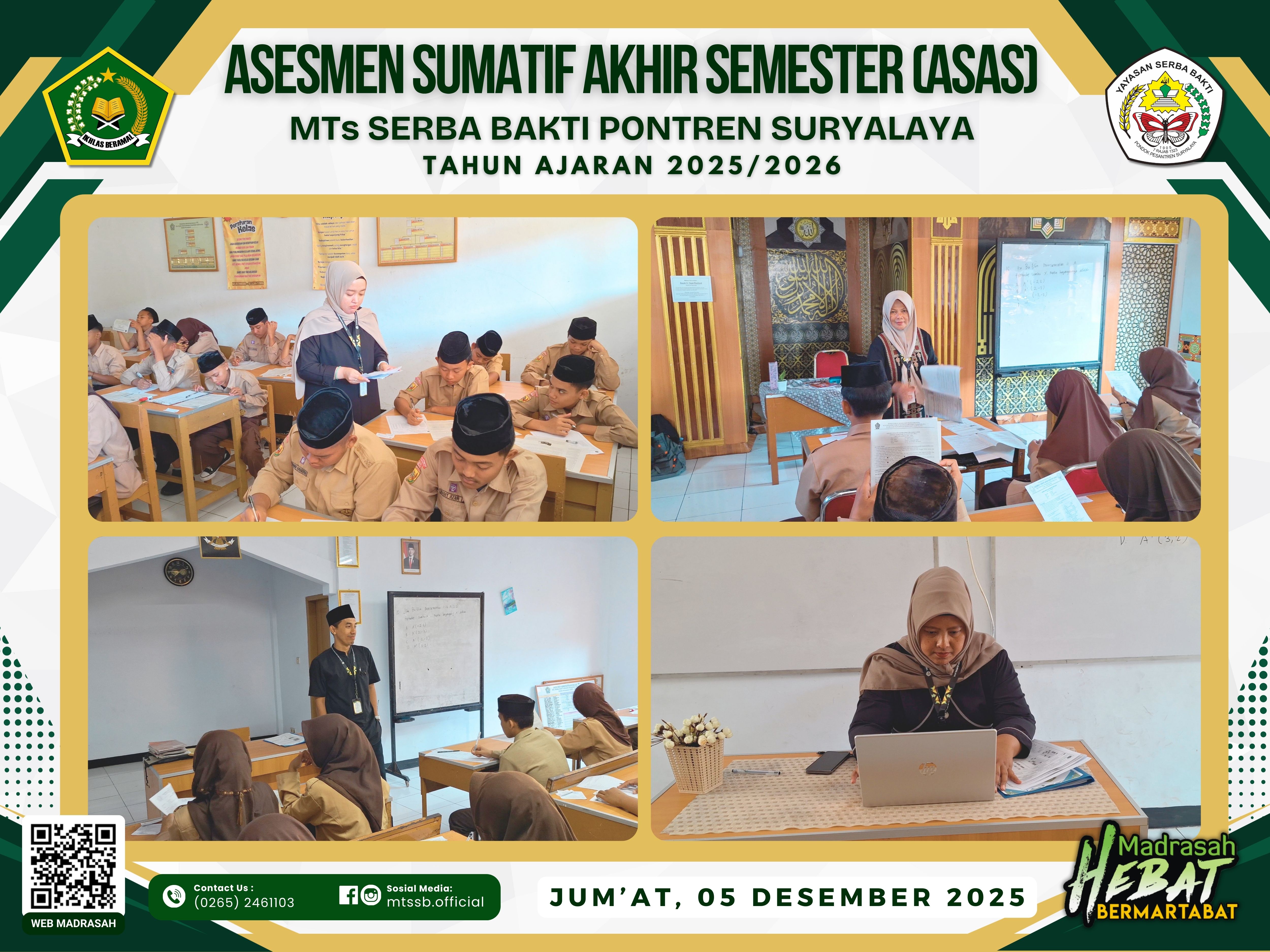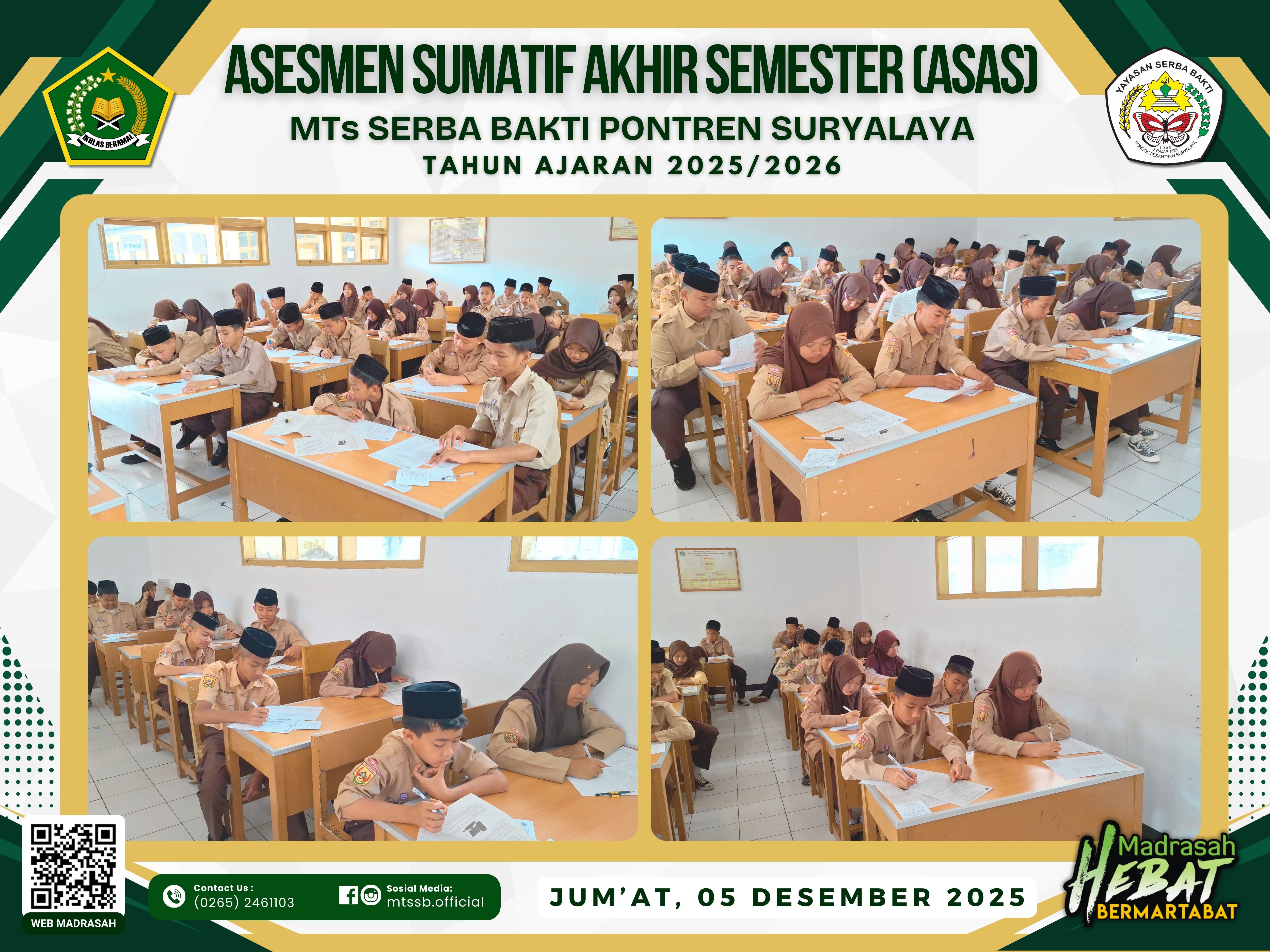 SURYALAYA - Sabtu, 07 Desember 2025. Pelaksanaan Asesmen Sumatif Akhir Semester (ASAS) hari keenam di MTs Serba Bakti Pontren Suryalaya menjadi penutup rangkaian ujian semester ganjil T