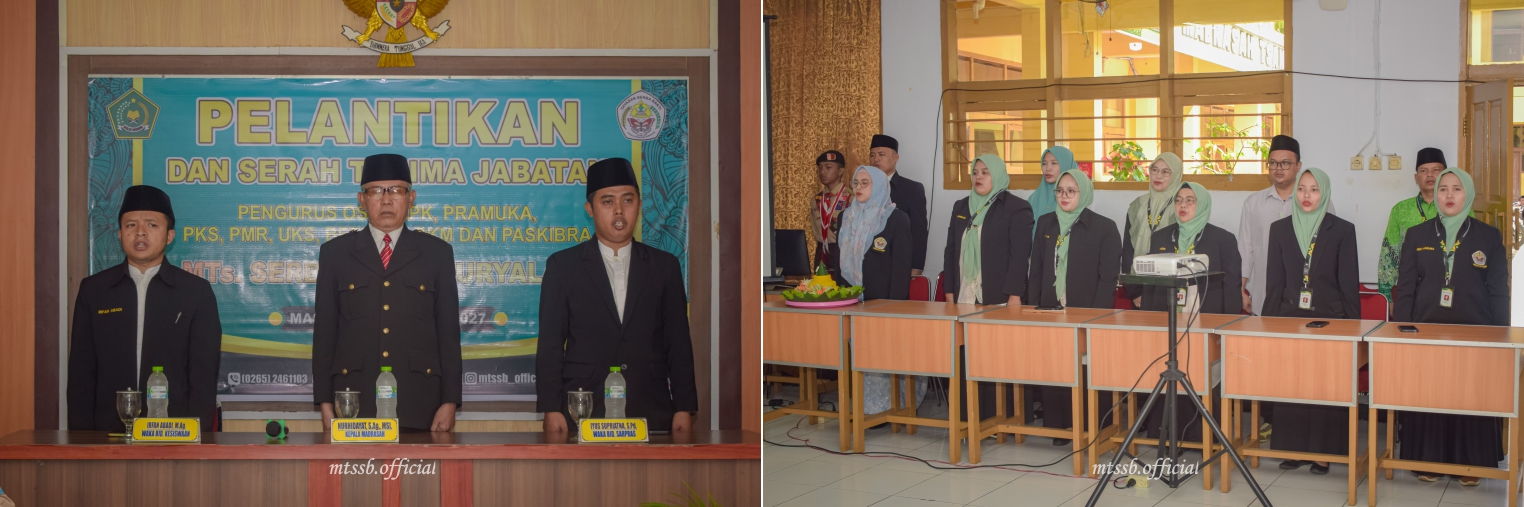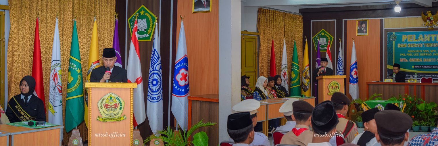 Terkait hal tersebut, pada Sabtu pagi (31/1/2026) MTs Serba Bakti menggelar Pelantikan dan Serah Terima Jabatan (SERTIJAB) Perwakilan Kelas, Pengurus OSIS dan Ekstrakulikuler (Pramuka, PKS, PMR, UKS, DKM, PASKIBRA dan BERRIAS) MTs Serba Bakti masa Khidmat 2026-2027.