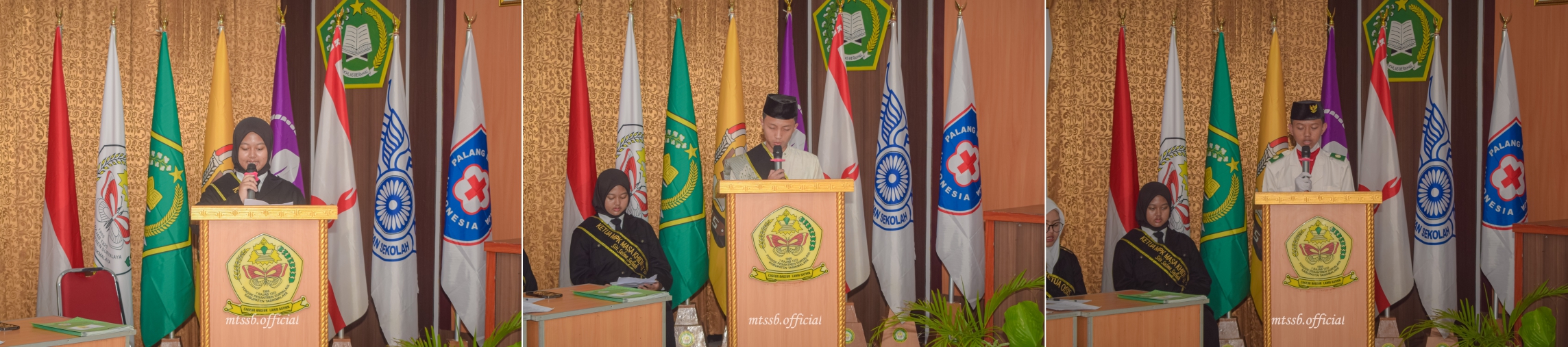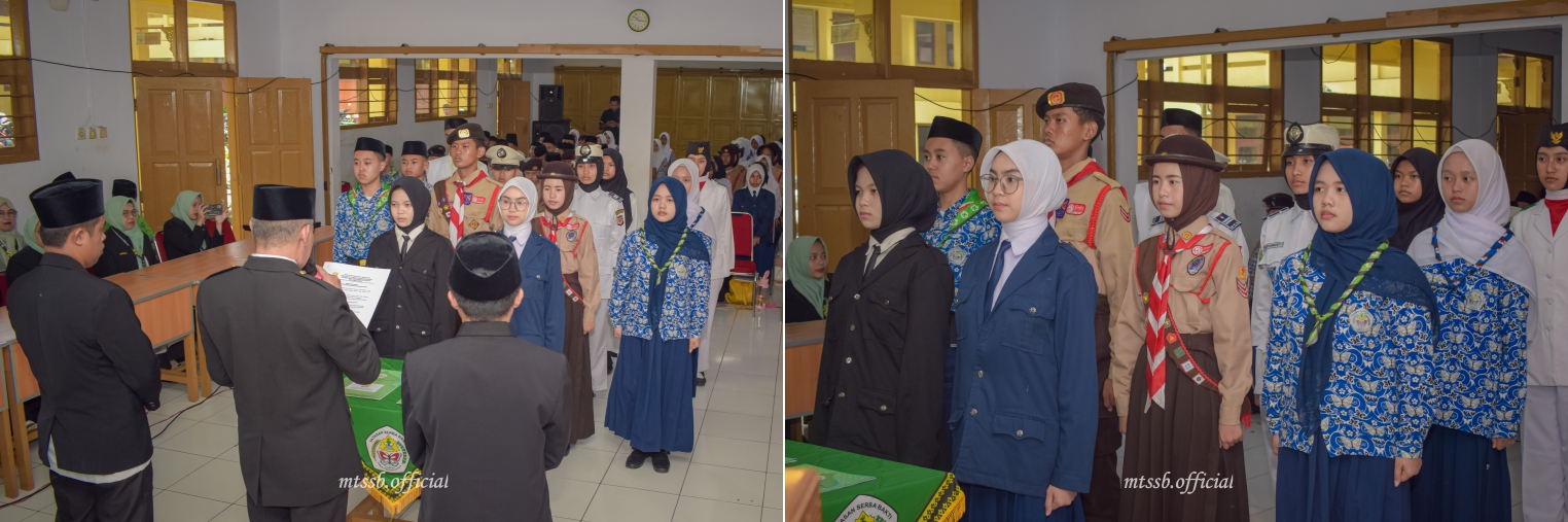 Adapun acara pelantikan dipandu oleh Pembawa acara, Siti Salma Sufia Rohimawati (Peserta didik Kelas IX), diawali dengan lantunan sholawat Bani Hasyim secara bersama-sama, dilanjutkan dengan Pembacaan Tanbih oleh Rafiq Muzaki Alfarizi (Peserta Didik Kelas IX), Tawassul Oleh Rafka Tresna (Peserta didik Kelas IX) dan Menyanyikan Lagu Wajib Nasional Indonesia Raya di Pandu Oleh Nabila Zakiyah Maheswari (Peserta Didik Kelas IX).