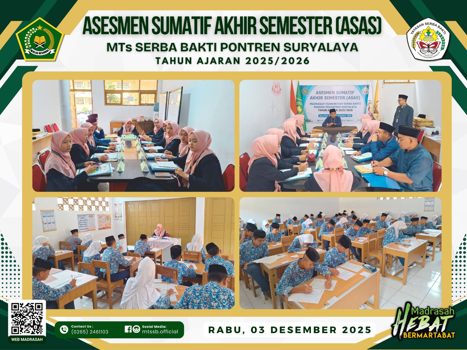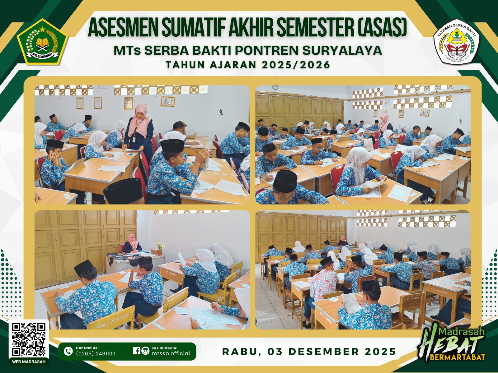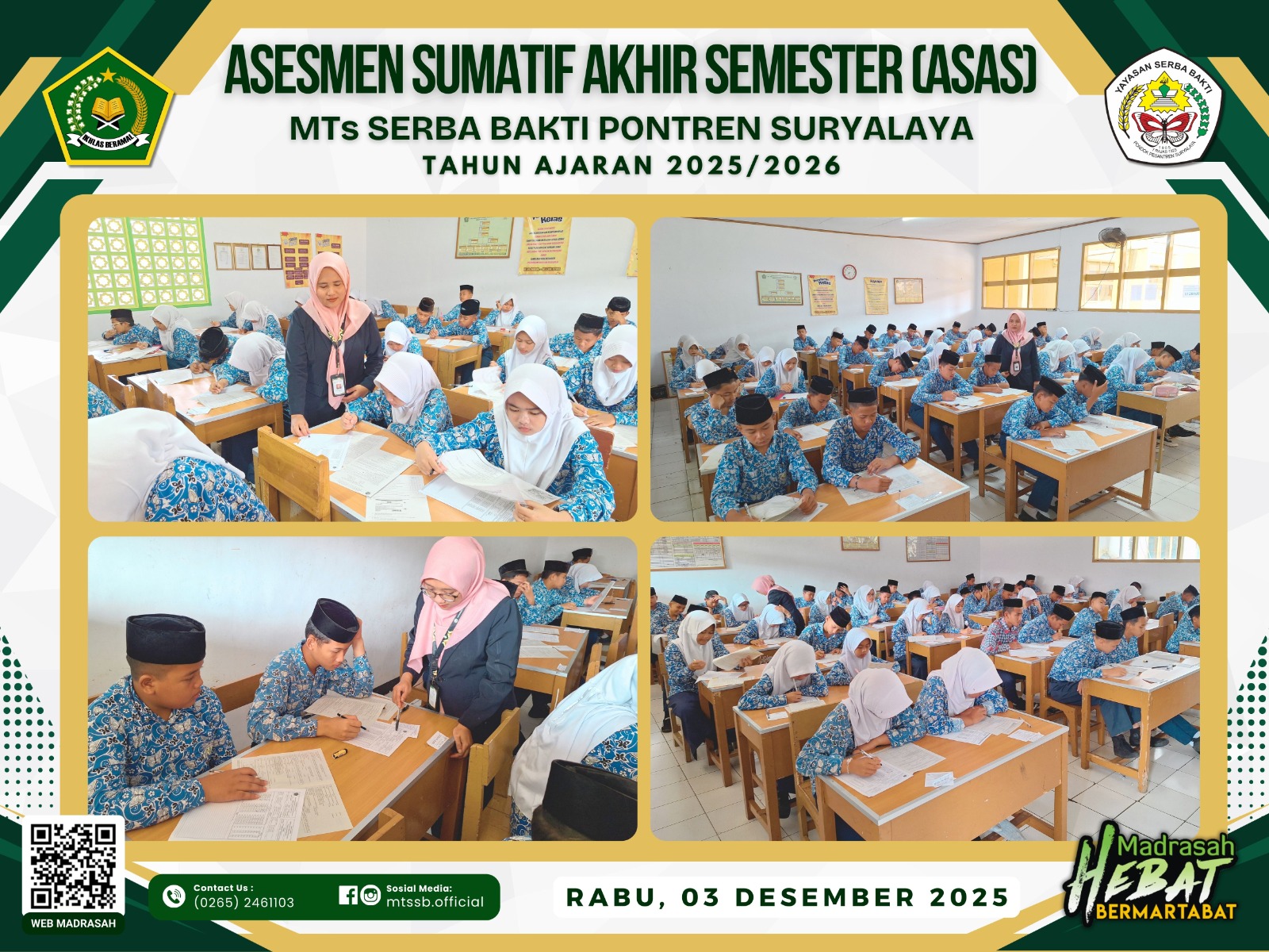 SURYALAYA - Sabtu, 07 Desember 2025. Pelaksanaan Asesmen Sumatif Akhir Semester (ASAS) hari keenam di MTs Serba Bakti Pontren Suryalaya menjadi penutup rangkaian ujian semester ganjil T