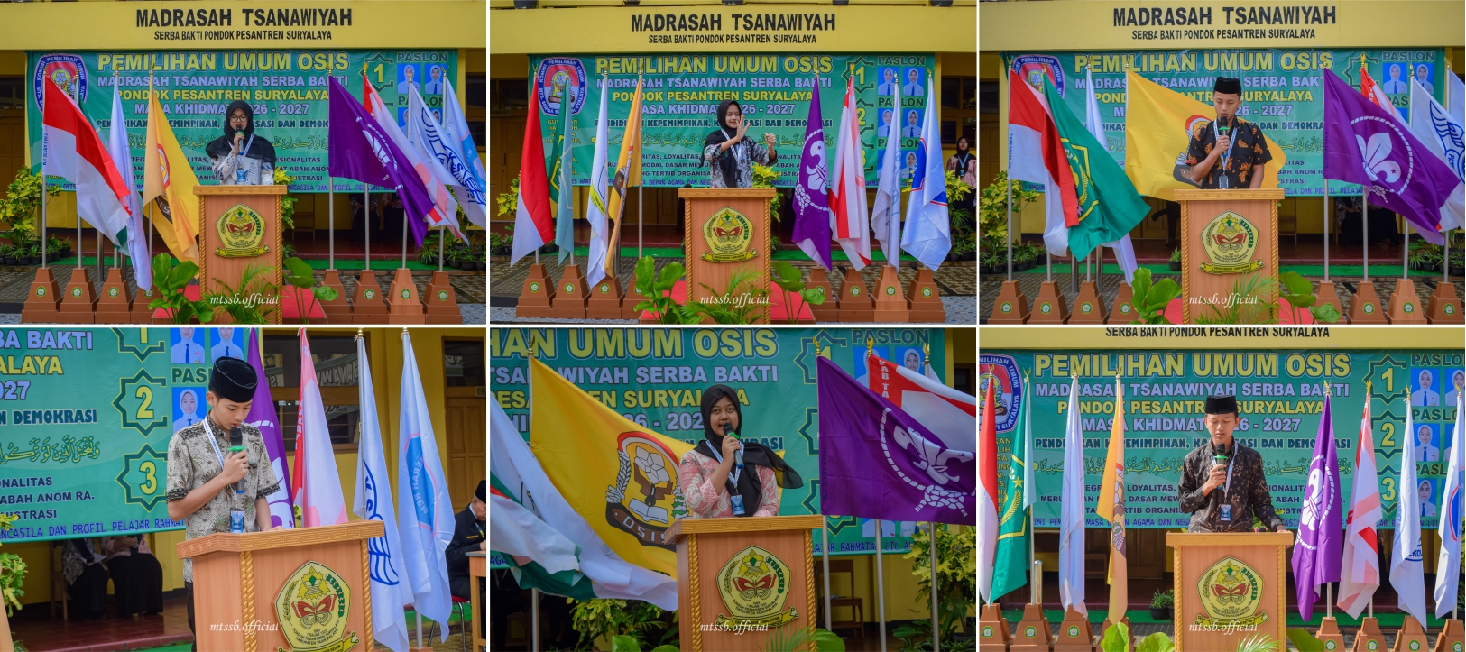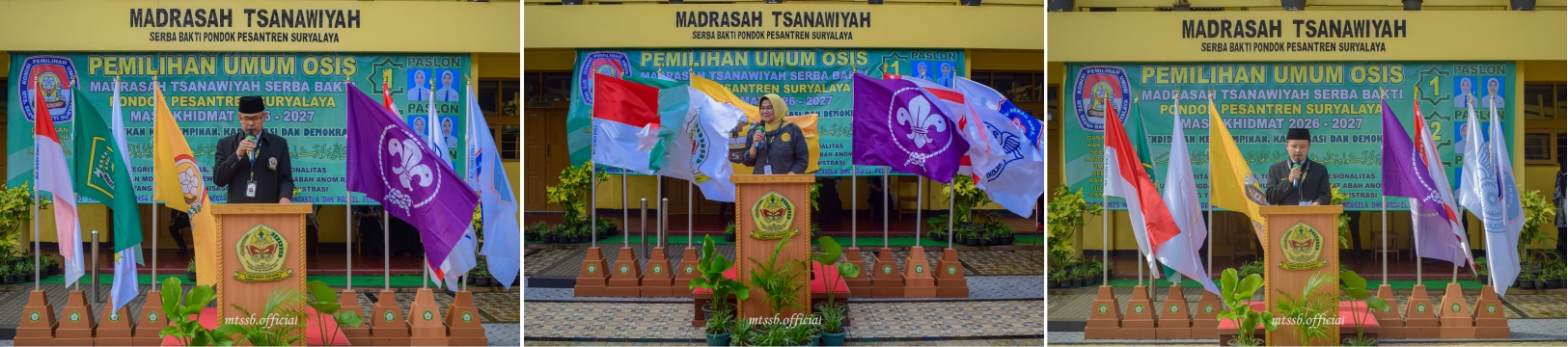 Kepala MTs Serba Bakti, Nurhidayat, S.Ag., MSI., dalam sambutannya menyampaikan bahwa Pemilu OSIS merupakan bagian penting dari pembinaan kesiswaan yang bertujuan membentuk karakter serta mengembangkan potensi murid, khususnya dalam bidang kepemimpinan, keorganisasian, dan kaderisasi. Hal tersebut sejalan dengan misi ketiga MTs Serba Bakti Pondok Pesantren Suryalaya. Beliau juga mengajak seluruh warga madrasah untuk menggunakan hak pilihnya secara langsung, umum, bebas, rahasia, jujur, dan adil sebagai wujud pembelajaran demokrasi sejak dini.