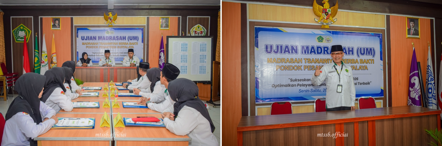 Tasikmalaya (20/04/2026) - Pelaksanaan hari pertama Ujian Madrasah (UM) Tahun Ajaran 2025–2026 di MTs Serba Bakti Pondok Pesantren Suryalaya berlangsung tertib dan lancar. Ujian yang dilaksanakan pada Senin (20/04) ini mengujikan mata pelajaran Bahasa Indonesia dan Al-Qur’an Hadis bagi seluruh peserta didik kelas IX.