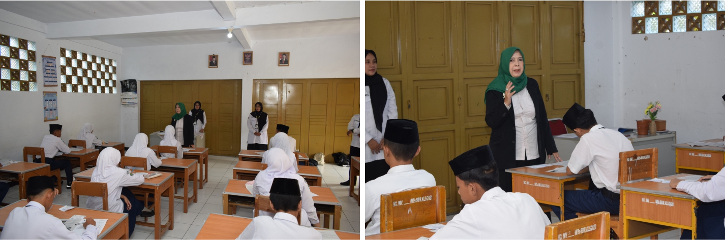 Dalam pelaksanaannya, monitoring Ujian Madrasah dilakukan secara langsung ke setiap ruang ujian oleh Kepala Madrasah bersama Pengawas Pembina dari Kementerian Agama Kabupaten Tasikmalaya, Ibu Mimin Aminah, M.Pd. Kegiatan ini bertujuan untuk memastikan seluruh proses ujian berjalan sesuai dengan ketentuan serta menciptakan suasana ujian yang kondusif dan tertib.
