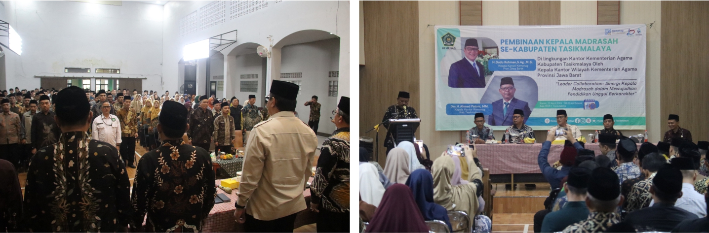 Pembukaan dimulai dengan prakata oleh MC, Pembacaan Do’a dan menyanyikan Lagu Indonesia Raya, dilanjutkan dengan Laporan Ketua Panitia, oleh Kepala Seksi Pendidikan Madrasah Kantor Kemenag Kabupaten Tasikmalaya, Dr. H. Aep Saepurohman, S.Ag., M. Si., yang menyatakan bahwa kegiatan ini penting untuk membangun sinergi kepala madrasah dalam mewujudkan pendidikan unggul berkarakter, beliau melaporkan bahwa pembinaan ini diikuti oleh sekitar 360 peserta, hal tersebut menunjukkan tingginya antusiasme kepala madrasah dalam mengikuti kegiatan dalam rangka meningkatkan kompetensi kepemimpinan madrasah.